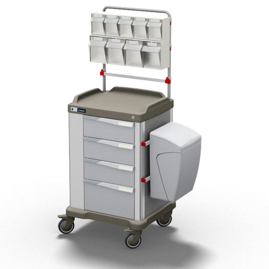 PRESTO Medium carrello terapia con 4 cassetti e sopralzo accessoriato (PS404-AL-M)